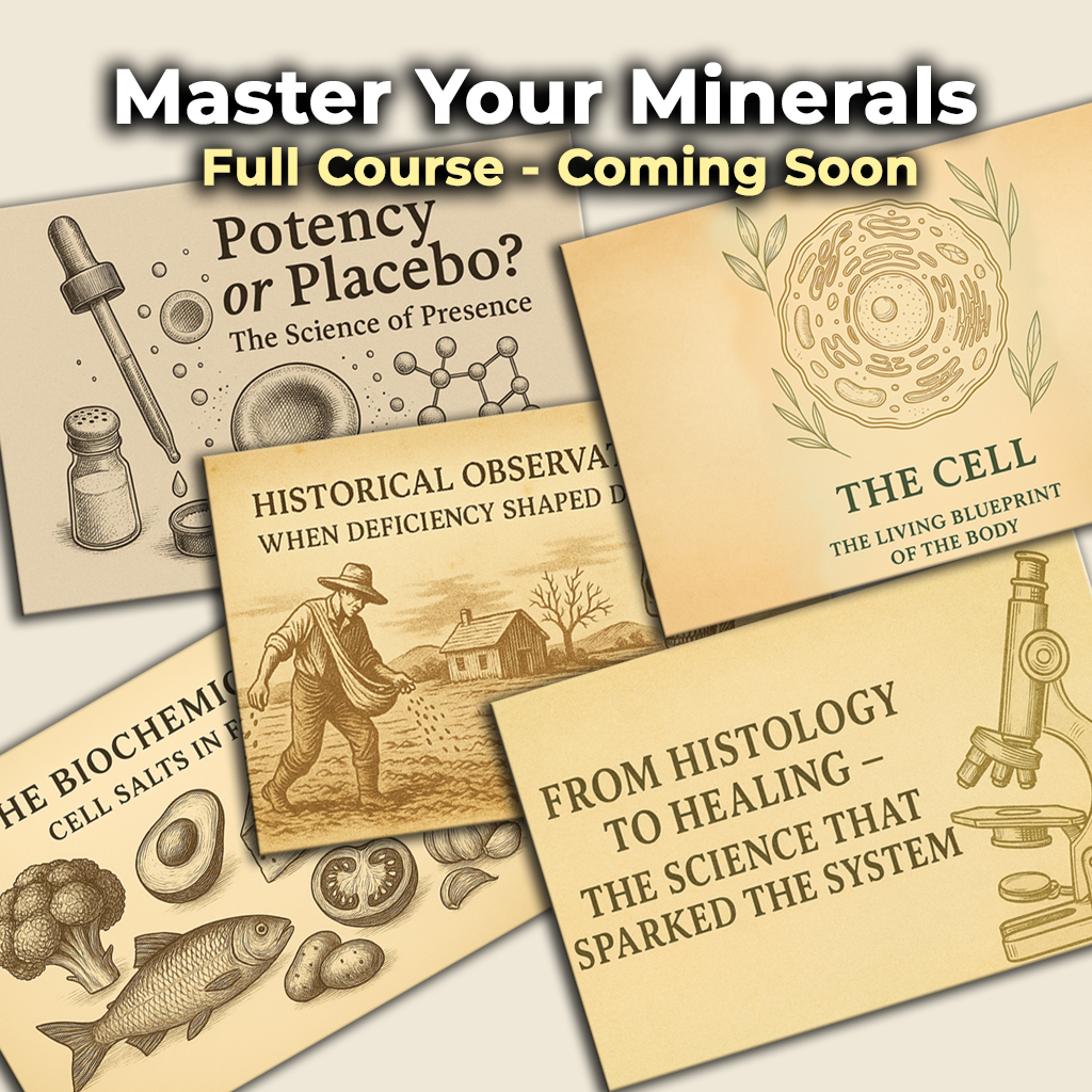 This course shows you how to decode symptoms, choose the right mineral combinations, and rebuild cellular health from the inside out, using the 12 main biological minerals that are vital for health.